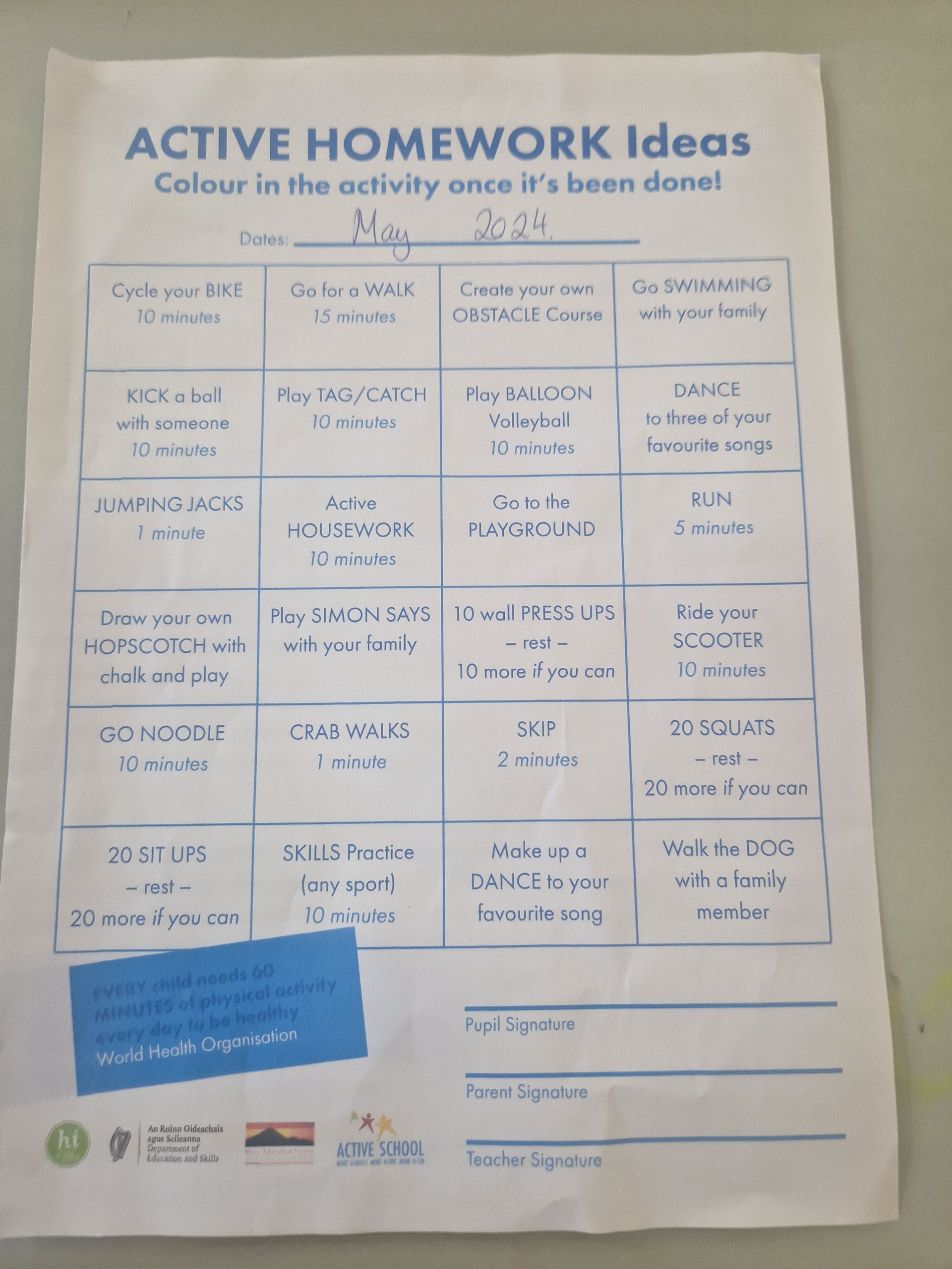 - We get PE homework to stay active at home too.