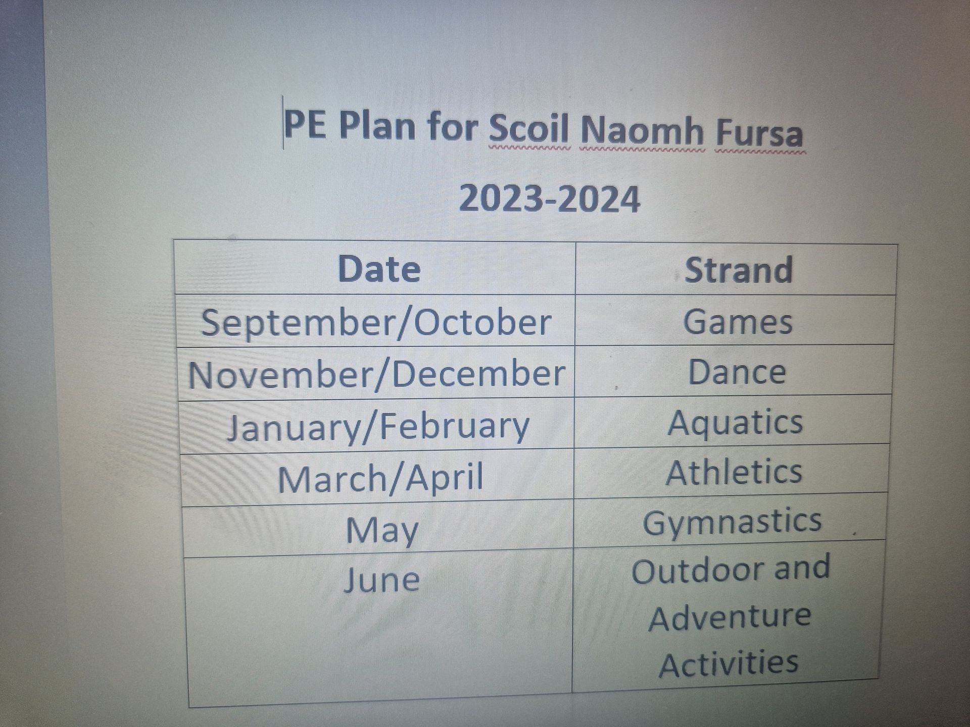- The pupils of Claran National School are provided with 60 minutes of timetabled Physical Education every week.
